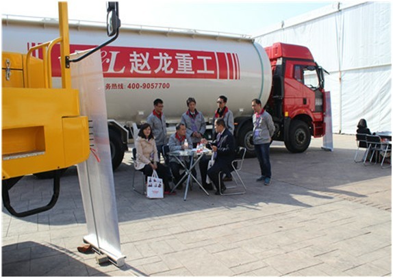 2013年11月19日,首屆中國義烏國際裝備制造業(yè)博覽會在義烏隆重開幕,逐漸發(fā)展壯大的趙龍重工,以600平米的參展面積、6臺高品質精品展車備受參展觀眾關注。本次參展車型有12方和16方混凝土攪拌車各1輛、粉粒物料運輸車和半掛粉粒物料運輸車各1輛、礦用自卸車2輛。展會期間,大氣的展車排布引來了許多參展人員前來觀賞,并贏得了廣泛的好評。