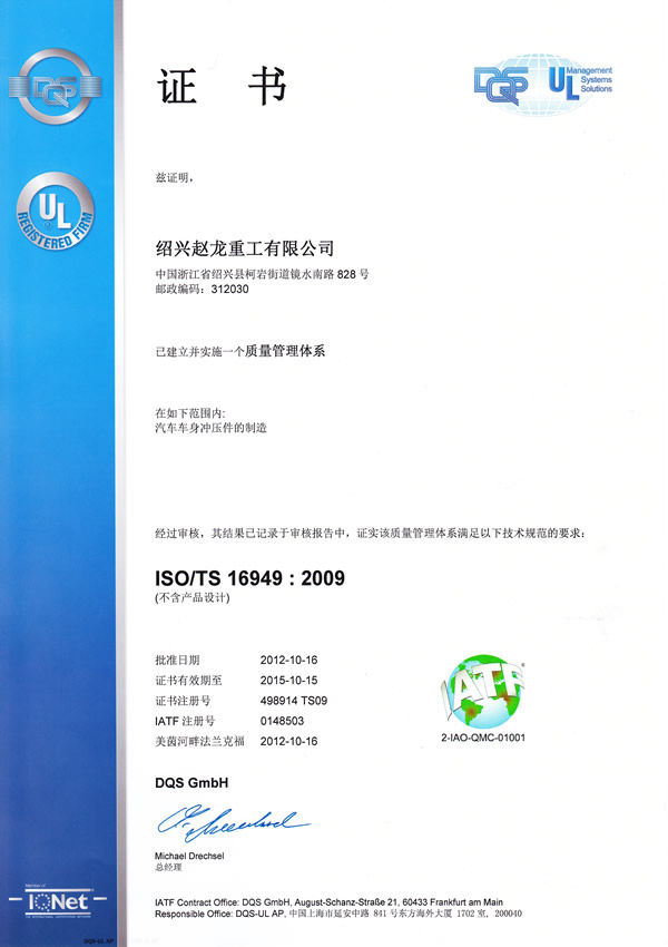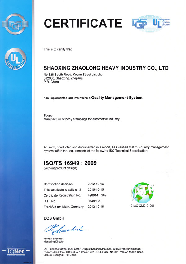 熱烈祝賀公司通過ISO/TS16949:2009和ISO9001:2008質(zhì)量管理體系認(rèn)證