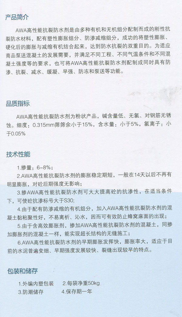 下一條:WJB 高性能液體復(fù)合型抗裂防水劑